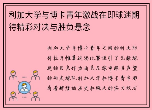 总而言之,从历史角度看,两队昔日恩怨以及近年来的发展趋势都为本次较量增添了不少看点。无论最终结果如何,这都是一段值得铭记的新篇章。
